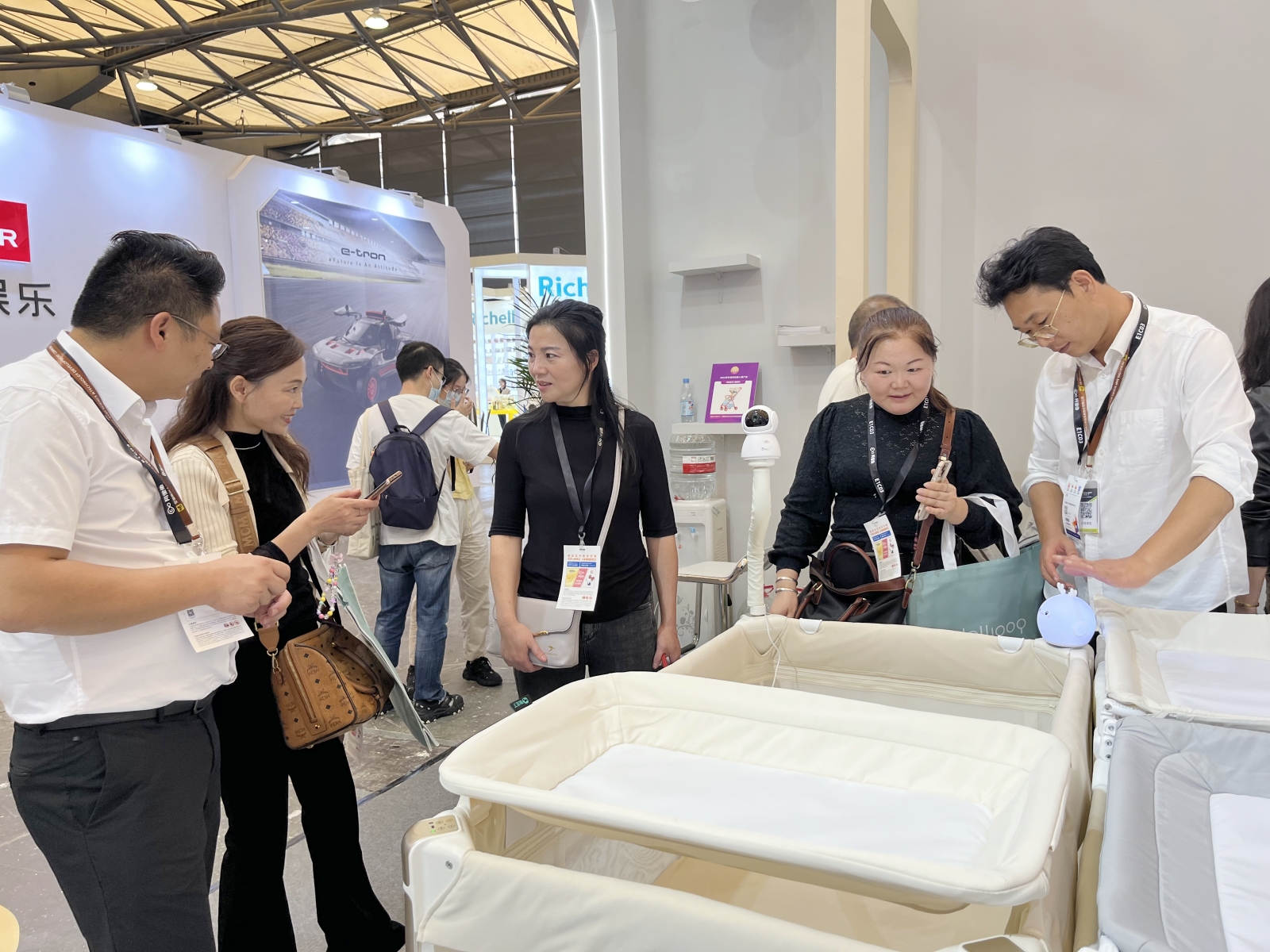 此次酷豆丁展示的自主研發(fā)產(chǎn)品包括嬰兒床、嬰兒車、兒童餐椅、嬰兒電動(dòng)搖床、搖椅等,吸引了眾多客戶和業(yè)內(nèi)人士的目光,紛紛前來體驗(yàn)咨詢。現(xiàn)場(chǎng)人潮涌動(dòng),氣氛熱烈。