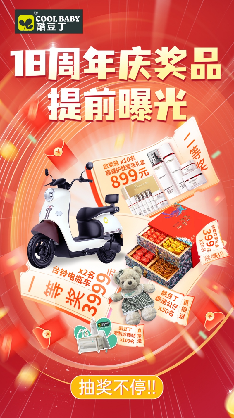 為了感謝酷豆丁員工一直以來(lái)的汗水與支持,本次周年慶典我們精心準(zhǔn)備了豐厚的獎(jiǎng)品,只待慶典當(dāng)日與酷豆丁家人們共享喜悅!
