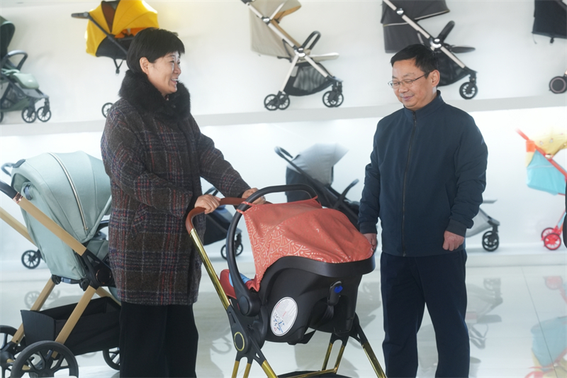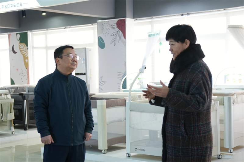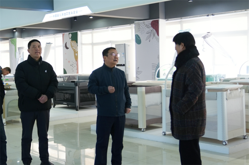 調(diào)研期間,李煜副市長(zhǎng)一行前往酷豆丁的產(chǎn)品樣品間,查看了各類(lèi)嬰童用品展示。在樣品間內(nèi),董事長(zhǎng)張迎年詳細(xì)介紹了公司產(chǎn)品的核心競(jìng)爭(zhēng)力、創(chuàng)新亮點(diǎn)以及市場(chǎng)定位等情況。李煜副市長(zhǎng)一行認(rèn)真聽(tīng)取介紹,并不時(shí)詢(xún)問(wèn)產(chǎn)品在國(guó)際市場(chǎng)的銷(xiāo)售情況、關(guān)稅政策對(duì)企業(yè)的影響以及企業(yè)目前面臨的困難和挑戰(zhàn)等,深入了解企業(yè)的發(fā)展現(xiàn)狀及未來(lái)規(guī)劃。