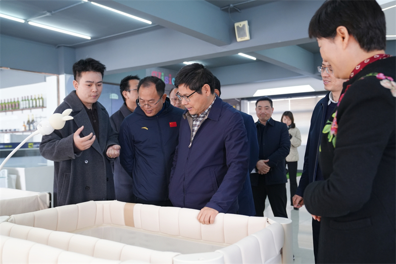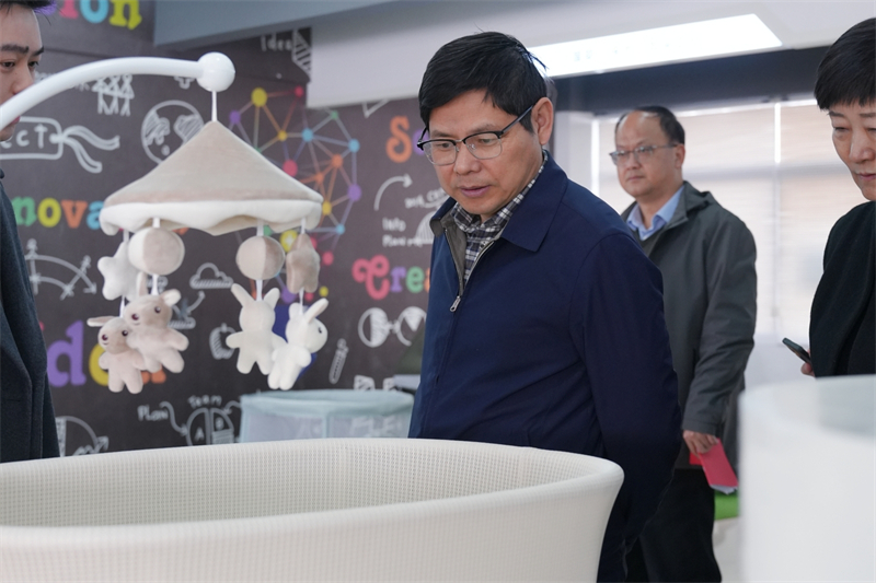 吳勁松同志首先前往了酷豆丁樣品間進(jìn)行參觀,張迎年董事長(zhǎng)詳細(xì)介紹了公司最新研發(fā)的智能嬰兒床等智能產(chǎn)品,展示了這些產(chǎn)品在創(chuàng)新技術(shù)方面的突破。隨后,調(diào)研組前往酷豆丁的質(zhì)量檢測(cè)實(shí)驗(yàn)室,實(shí)地觀摩了產(chǎn)品的檢驗(yàn)過(guò)程,進(jìn)一步了解了酷豆丁在保障產(chǎn)品質(zhì)量和消費(fèi)者體驗(yàn)方面所做的努力。
