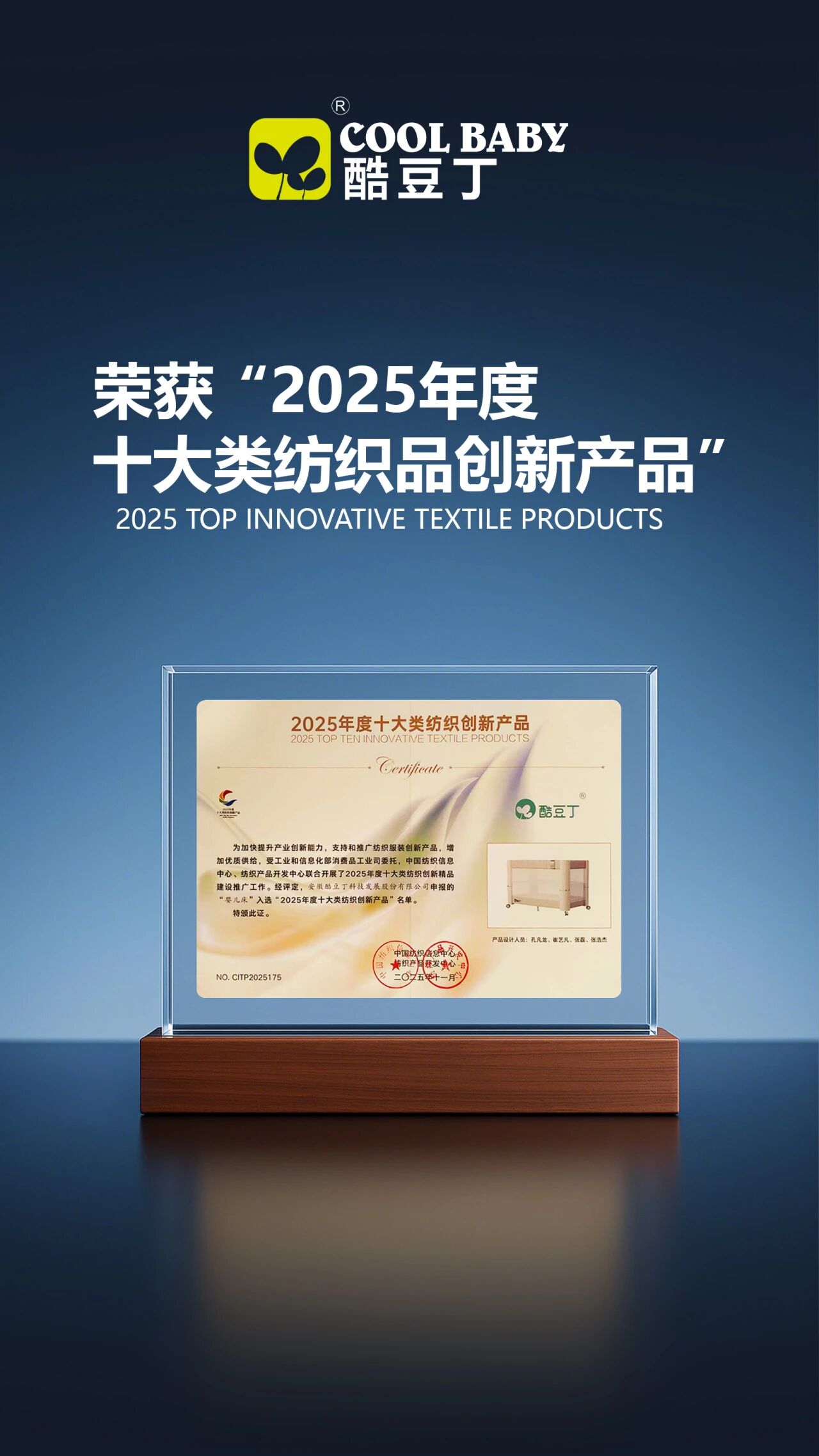 本次成功入選"2025年度十大類紡織創(chuàng)新產(chǎn)品",是酷豆丁嬰兒床在研發(fā)設(shè)計中的又一里程碑式進(jìn)階。這既是榮譽(yù),更是責(zé)任??岫苟∫矔^續(xù)用實(shí)力證明:真正的創(chuàng)新是既改變生活,又溫暖人心。