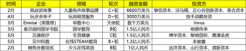 以下,我們具體來看早幼教、母嬰產(chǎn)品與服務、孕產(chǎn)醫(yī)療健康等板塊的投融資變化。