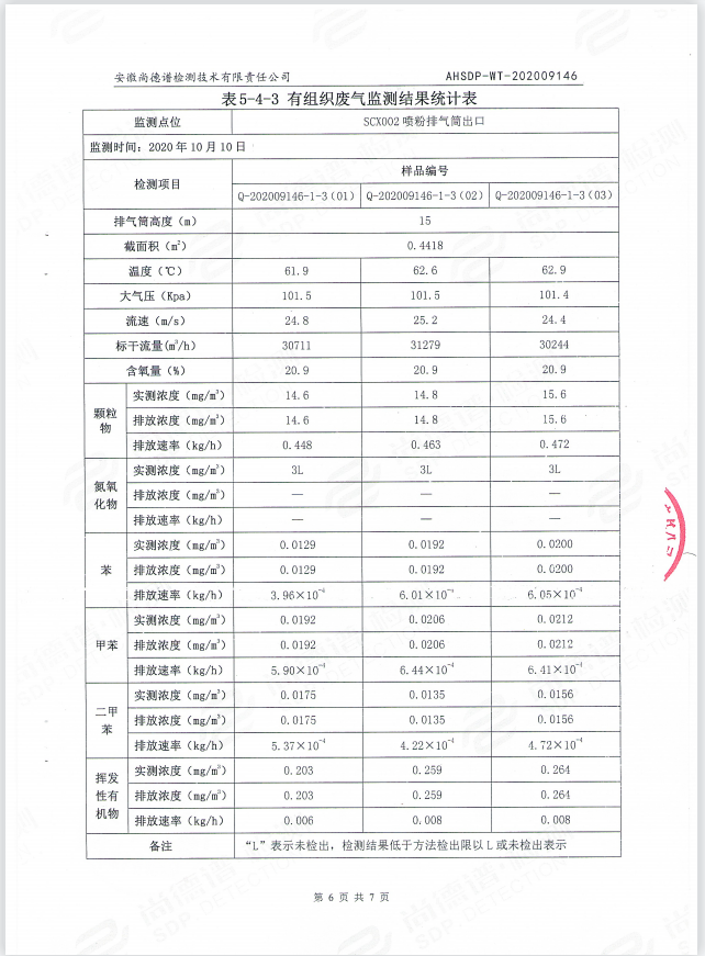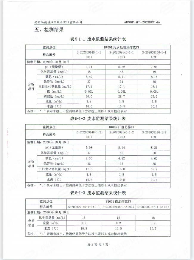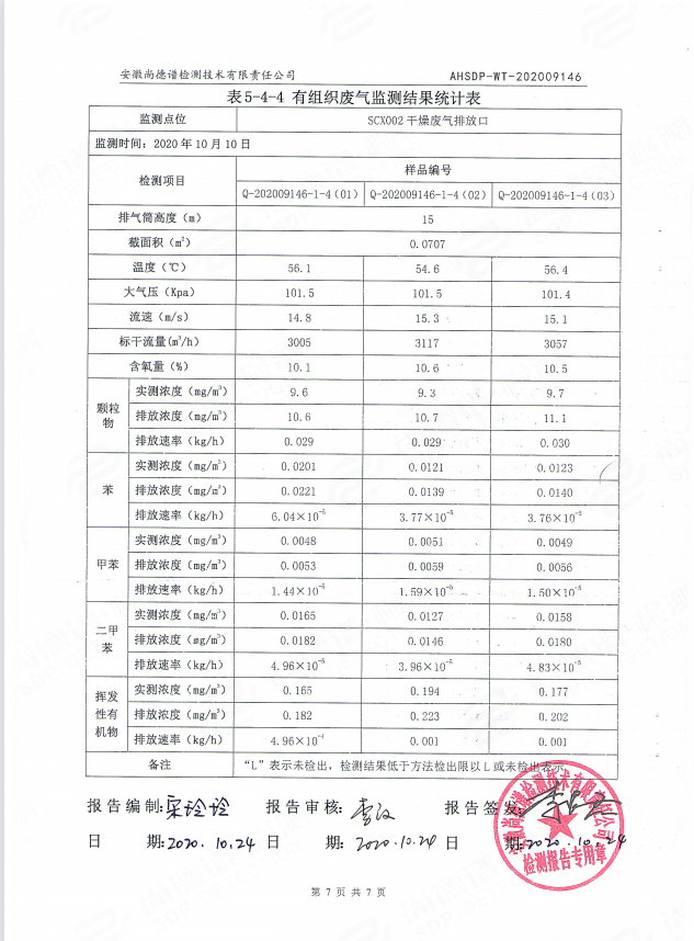 委托監(jiān)測(cè)單位為安徽尚德譜檢測(cè)技術(shù)有限責(zé)任公司,委托監(jiān)測(cè)內(nèi)容有組織廢氣、無(wú)組織廢氣、廢水等。根據(jù)監(jiān)測(cè)結(jié)果可知,公司?2020年度主要污染物排放均達(dá)到現(xiàn)正執(zhí)行的排放標(biāo)準(zhǔn),無(wú)超標(biāo)情況發(fā)生。