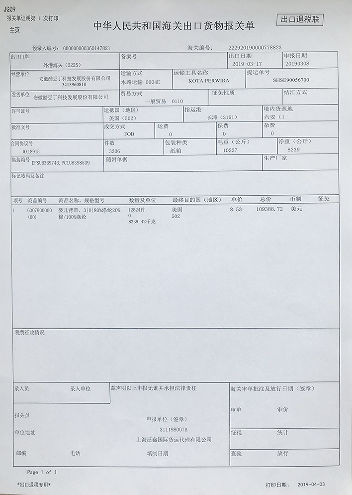 出口報(bào)關(guān)單